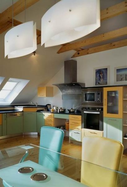 Dům má nepravidelný půdorys s šířkou domu 12,85 m a délkou 12,04 m. Je proto vhodný pro parcely střední velikosti. V našem případě je využito přízemí pro kanceláře naší společnosti a v druhém nadzemním podlaží je ukázkový byt. Díky použitému stavebnímu systému aktivního odvětrávání dřevěné kostry domů činily náklady na vytápění domu méně než 15000 Kč za rok (tepelné čerpadlo vzduch-voda).