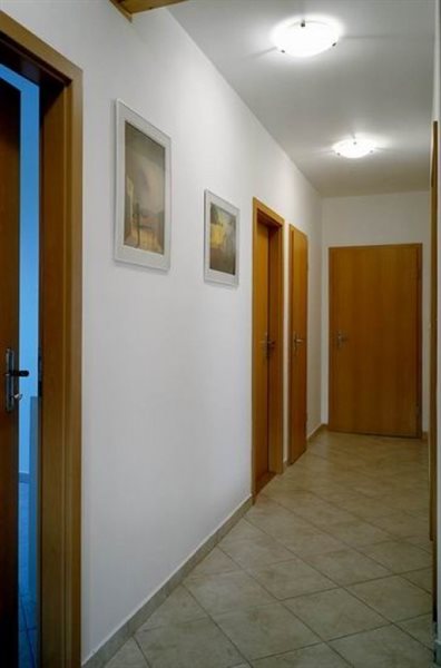 Druhé nadzemní podlaží využívá jako svůj služební byt majitel společnosti. Původně projektovaný balkon si nechal obestavět, aby tak zvýšil podlahovou plochu bytu. Vnitřní dispozice patra již modelovému domu neodpovídá. Odstraněním několika metrů příček vznikl otevřený obytný prostor, který působí velmi vzdušně a jehož interiérové vybavení je řešeno s velkým citem pro barvy. Patro je vytápěno teplovodními radiátory.